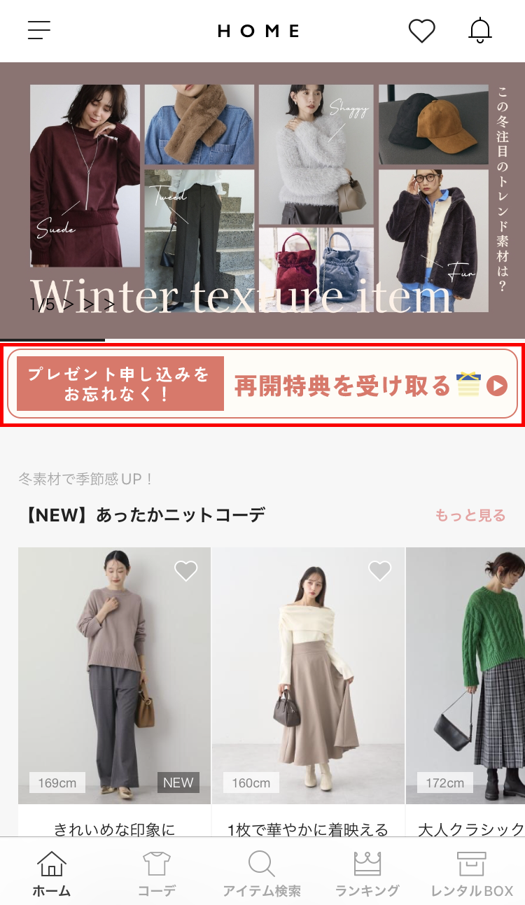 レンタルしたアイテムの中から1点