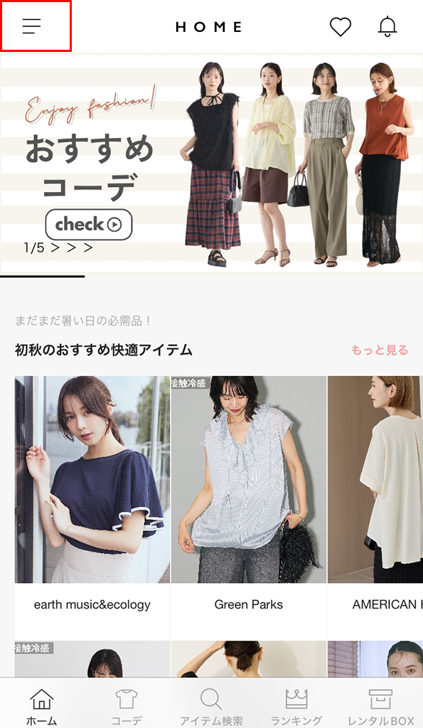 ①メチャカリのアプリを開いてメニューをタップ