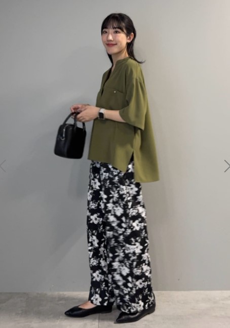 ニュアンスある総柄プリントが、コーデにアクセントをプラス◎