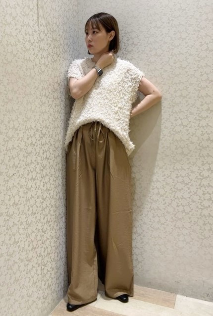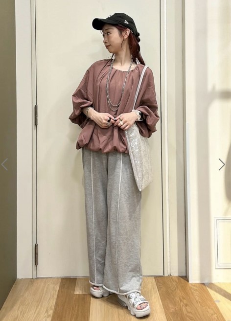 袖口・裾をバルーンシルエットに仕上げ、レディライクな雰囲気を演出。