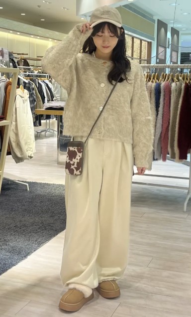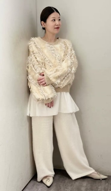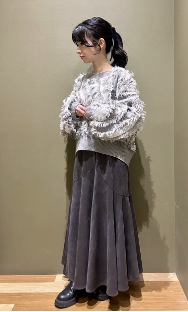 毛足の長いフリンジディテールが、トレンド感のある装いに♪