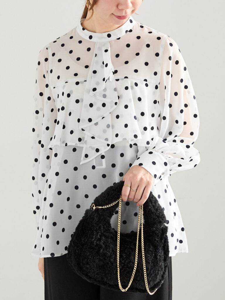 ドッド柄ブラウスや