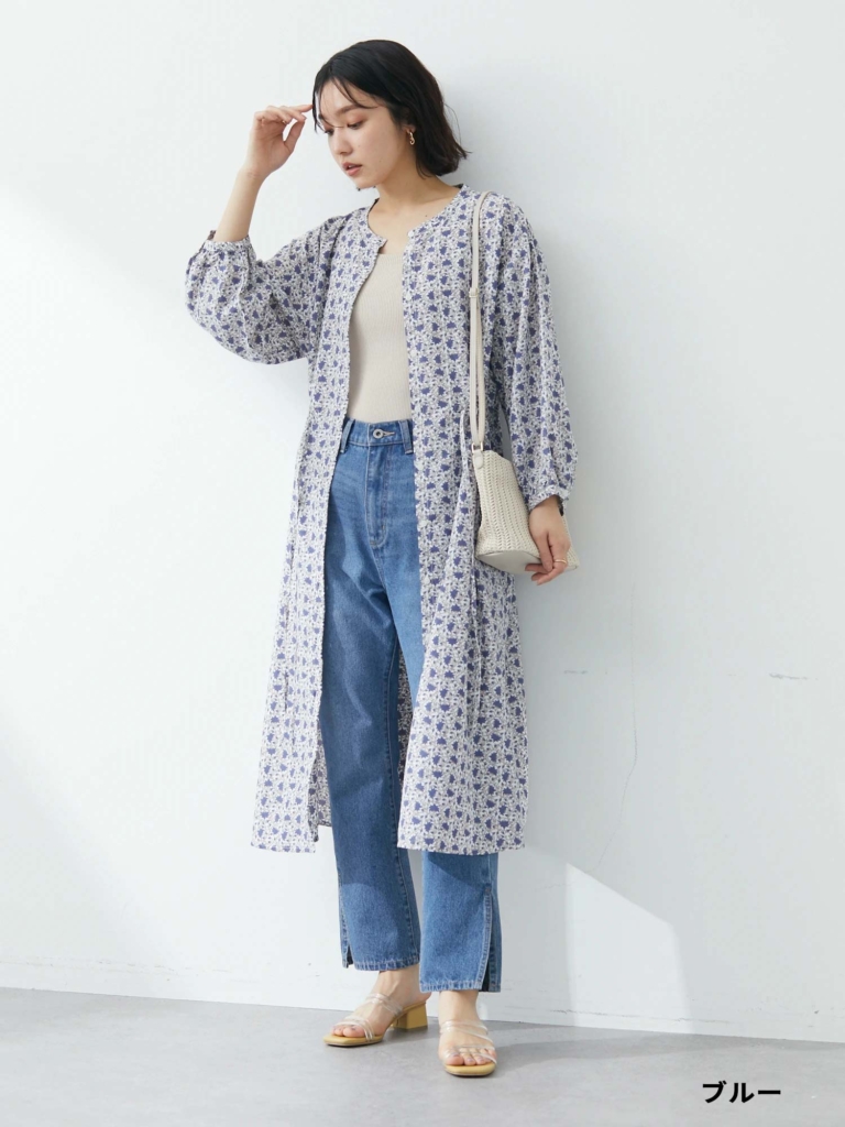 前開き仕様で、羽織としてもワンピースとしても着用できます♪