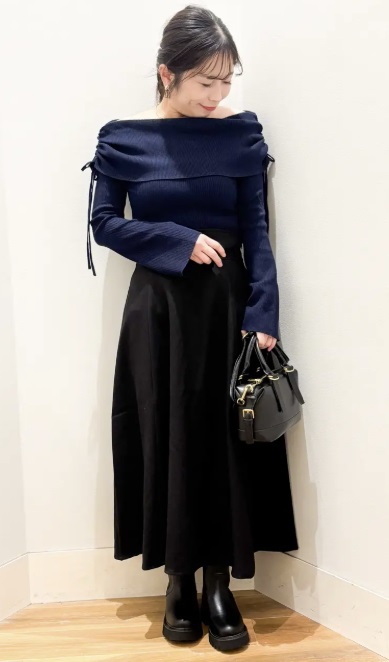 肩周りのギャザーディテールとオフショルデザインが、フェミニンな印象に♪