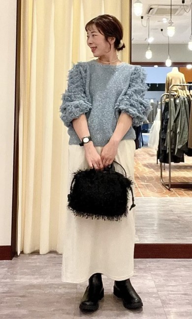 立体ニュアンス柄がアクセントになり、シンプルなボトムスでもコーデが完成♪