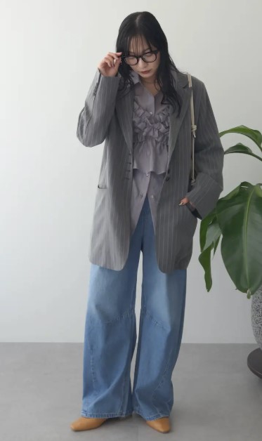 前を留めても開けてもバランスよく決まり、インナー次第で表情が変わるのも魅力♪