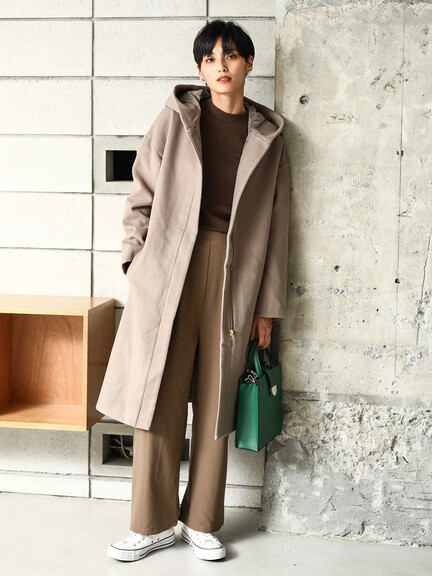 同系色を使用して秋冬に合わせたシックな雰囲気を演出。程よいゆとりがあるドロップショルダー付きのベーシックなデザインです。マルチなシーンで活躍するため一着あるだけでコーデが決まります。