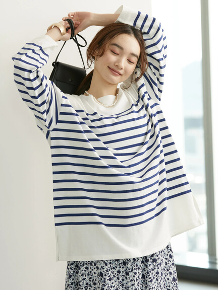 トップスはワイドカットソーを選んでアクティブさをプラスしましょう。アウトドアやレジャーにも最適なコーデです。