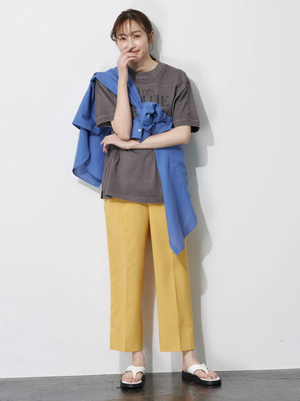 バック部分のみゴム仕様なので、オーバーサイズのトップスやジャケットのほかに、カットソーをインして楽しむこともできます。