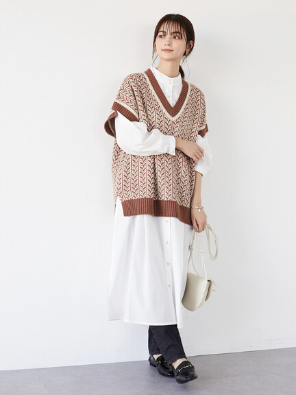 もちろんオフィススタイルにも対応可能です。普段羽織っているカーディガンをベストに変えるだけで、きちんと感を残しながらも今どきな印象が与えられますよ。