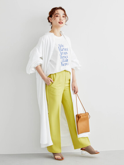ハイウエストのストレートパンツがもたらす脚長効果で美ラインを強調。ウエストゴムのリラックススタイルでありながら、同時にスタイルUPが叶う一着です。