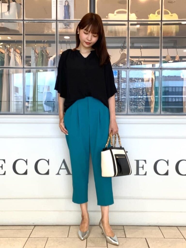 足首が見える9分丈のテーパードシルエットは、美脚に見せる効果があります。軽快でありながらも、テーパードできっちり感が出るので好印象を与えられますよ。