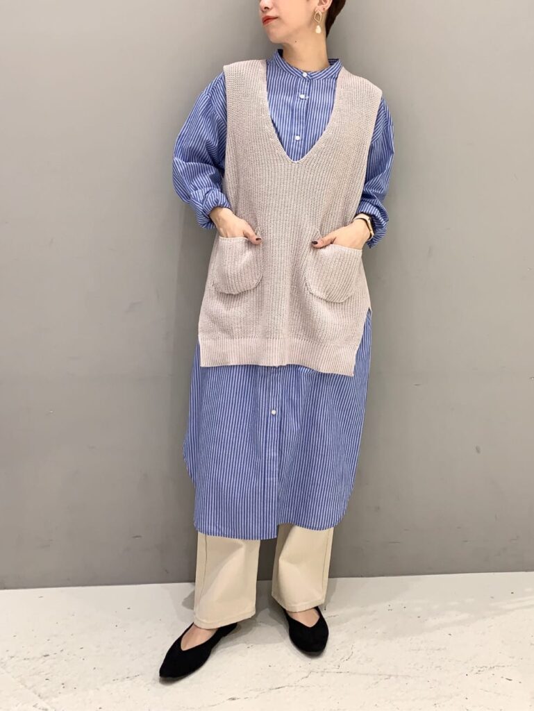 もちろん、シャツやカーディガンの前を留めてトップスとしての着こなしもできるので、さまざまなコーデに取り入れやすいアイテムです。