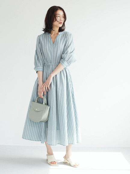 一口にワンピースといってもさまざまな形がありますが、特にウエストがゴムになっているものやIラインワンピは、比較的ゆったりしたシルエットになっています。