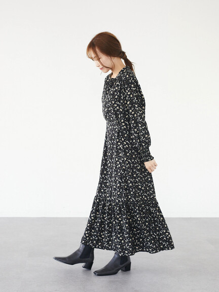 冬にはセーターをONして、スカート部分と襟元だけを見せたコーデもおすすめ◎防寒対策とおしゃれの両立がかなうワンピースです。
