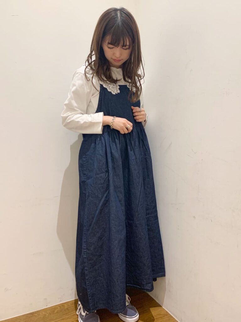 どんなインナーにも合わせやすいデニムワンピース。合わせるアイテムによって、かわいい系からカジュアルまで、印象を変えることができる万能アイテムです。