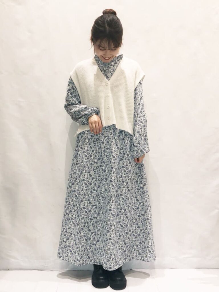 涼しい季節から少し肌寒い季節に移り変わる時期には、ワンピースにベストやビスチェを重ねてみましょう。コーデの幅を広げるだけでなく温度調整にもなるので、着用できる期間を伸ばすことができます。
