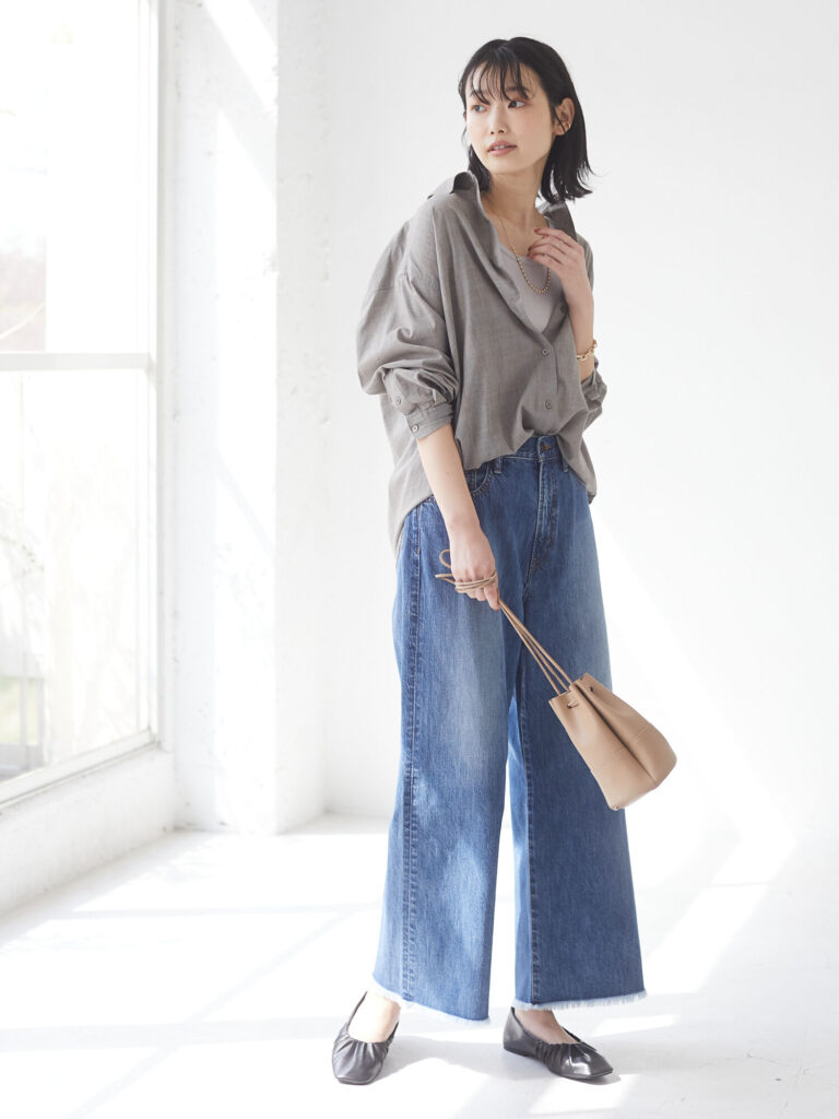 シャツは、かっちり感が魅力の一つですが、だからといってきれいめにこだわる必要はありません。ゆったりとしたシャツを、あえてゆったりとしたボトムスに合わせるのもおすすめです。