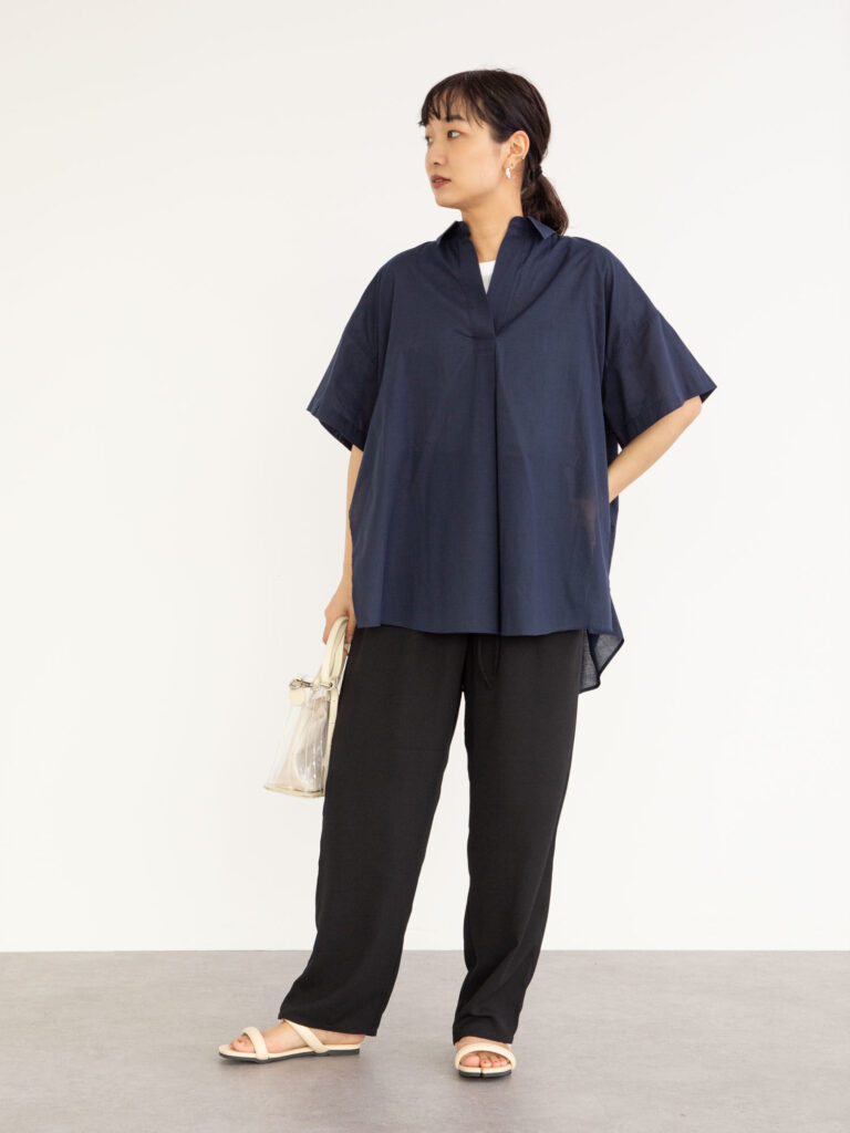 首元が開いたスキッパーシャツは、カジュアルな雰囲気を持ちつつも、エレガントにまとめられるのが特徴です。