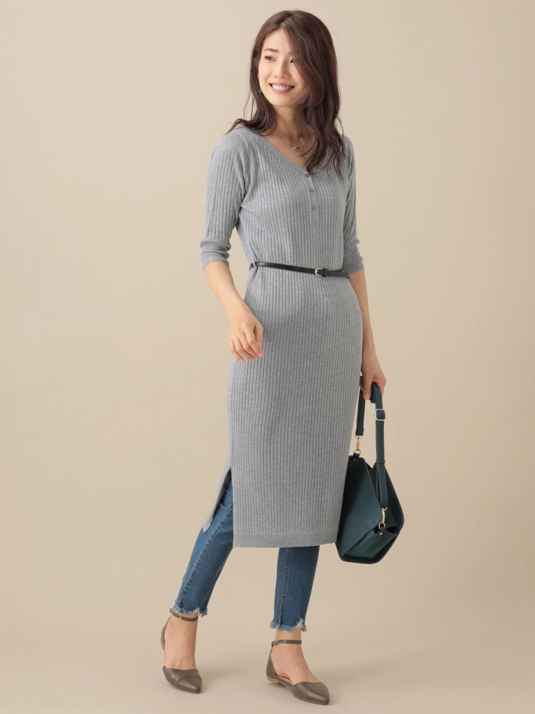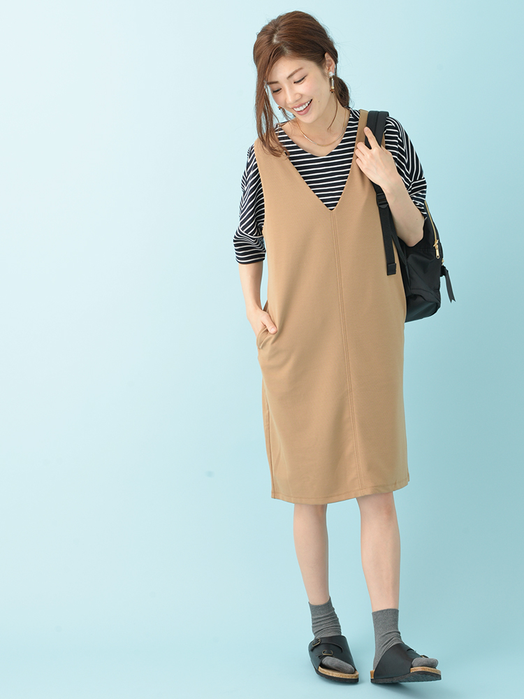 ワンピースで着ることもできますし、アウターとして上から羽織れば重ね着スタイルも可能です。ベルトを使ってウエストマークして変化を付けてもいいですね。