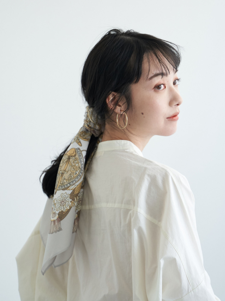 このほか、ベルト代わりに腰に巻いたり、ヘアアクセサリーとして使ったり、いろいろなスタイリングが可能です。