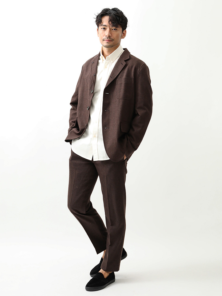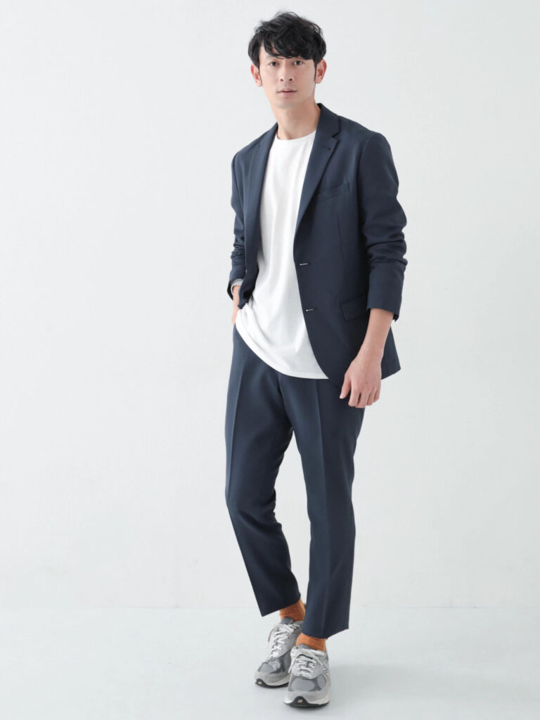 ジャケットとパンツはセットアップとして着こなしましょう。