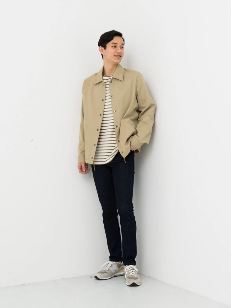 シャツ風のコーチジャケットを着れば、ジャケットコーデを上手くカジュアルダウンできます。無地やボーダーのシャツを合わせてすっきりとまとめましょう。