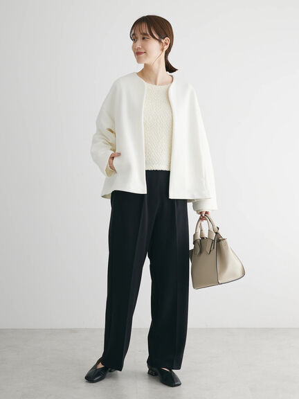 ノーカラージャケットは、きちんと感を持ちつつ女性らしい柔らかさも出したい時におすすめです。
