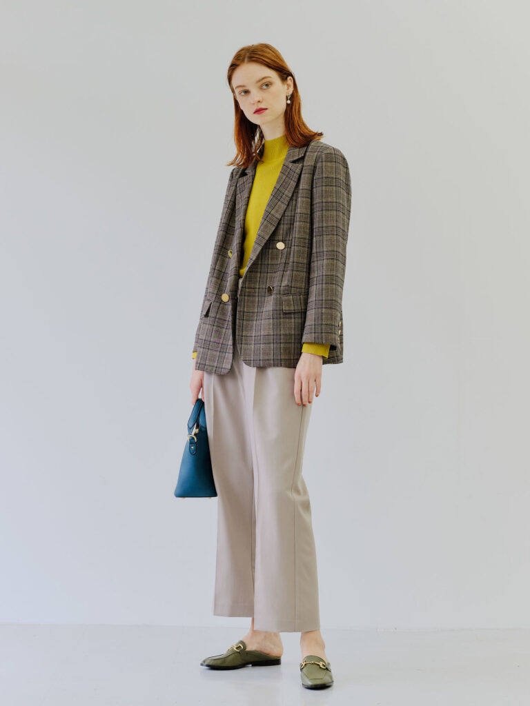 オフィスで着るなら、テーラードやノーカラーのジャケットを用意しておくと便利。羽織るだけできちんと感が出るので毎日の着回しにも重宝します。