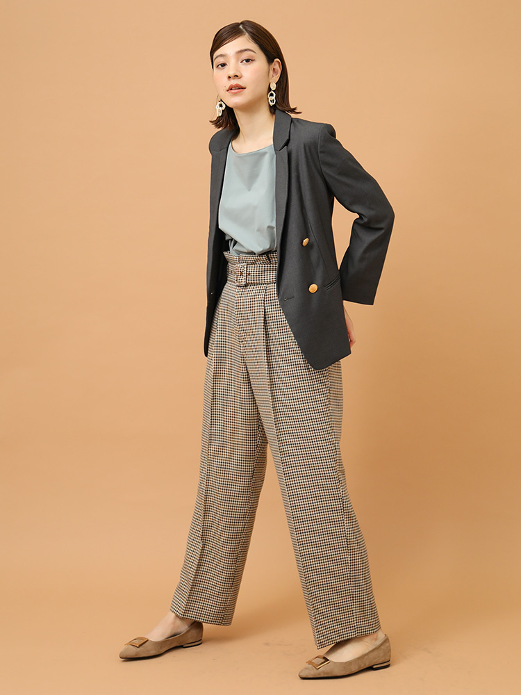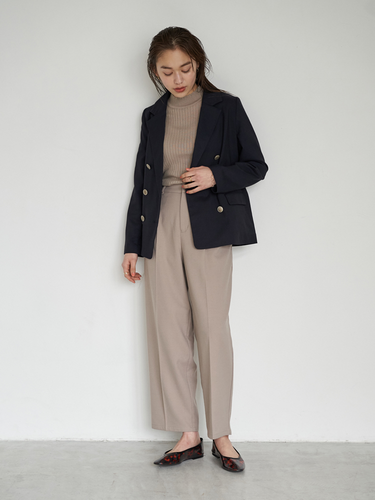 ジャケットとタックパンツの組み合わせは、大人キレイめコーデの王道。すっきりとしていてきちんとしたイメージを演出できます。