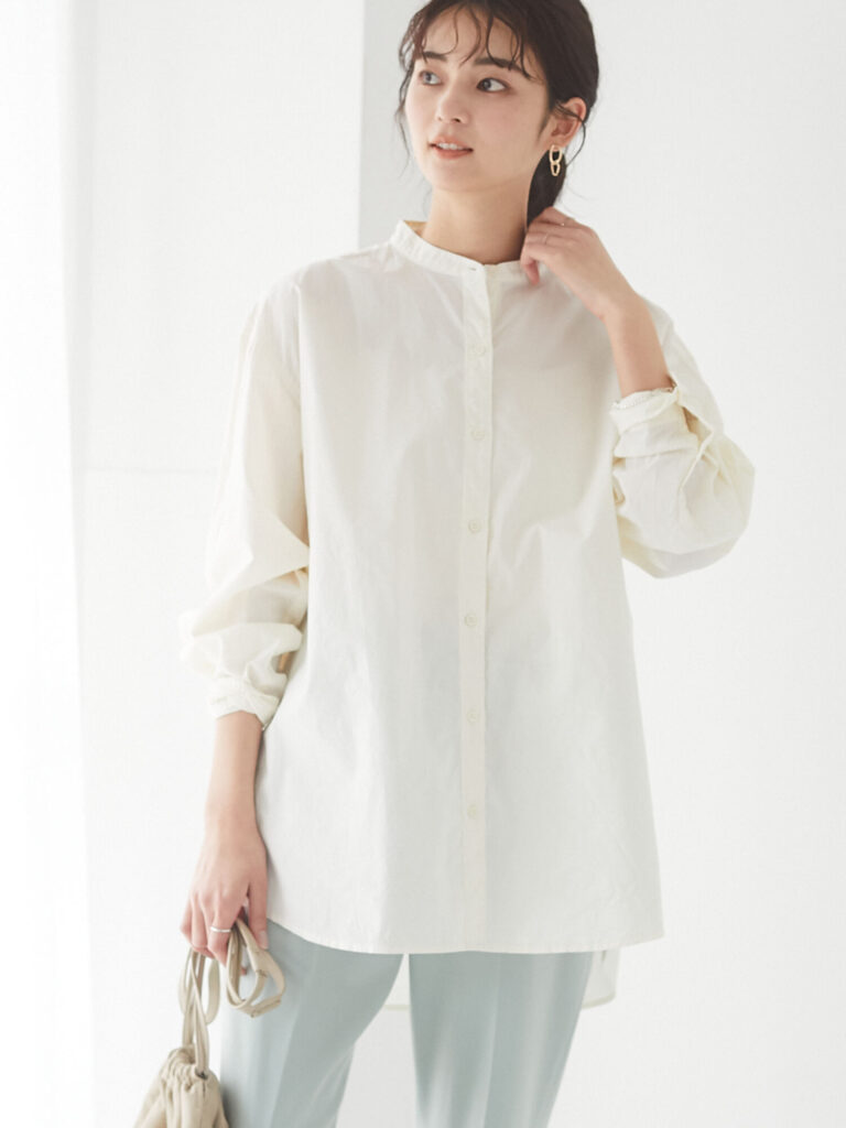 ダークカラーのブラウスだと少し重い印象になってしまうので、明るい色がおすすめです。