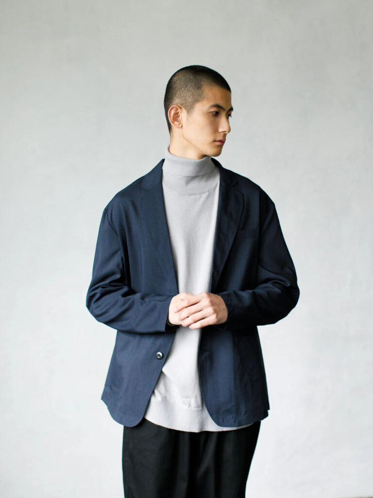また、インナーをロゴTシャツなどポップな装いに変えればカジュアルコーデにもなり、いろいろなスタイリングが可能です。