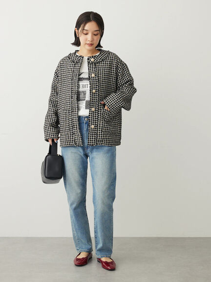 ツイードジャケットにブルーデニムを合わせれば、上品なデニムコーデのできあがりです。