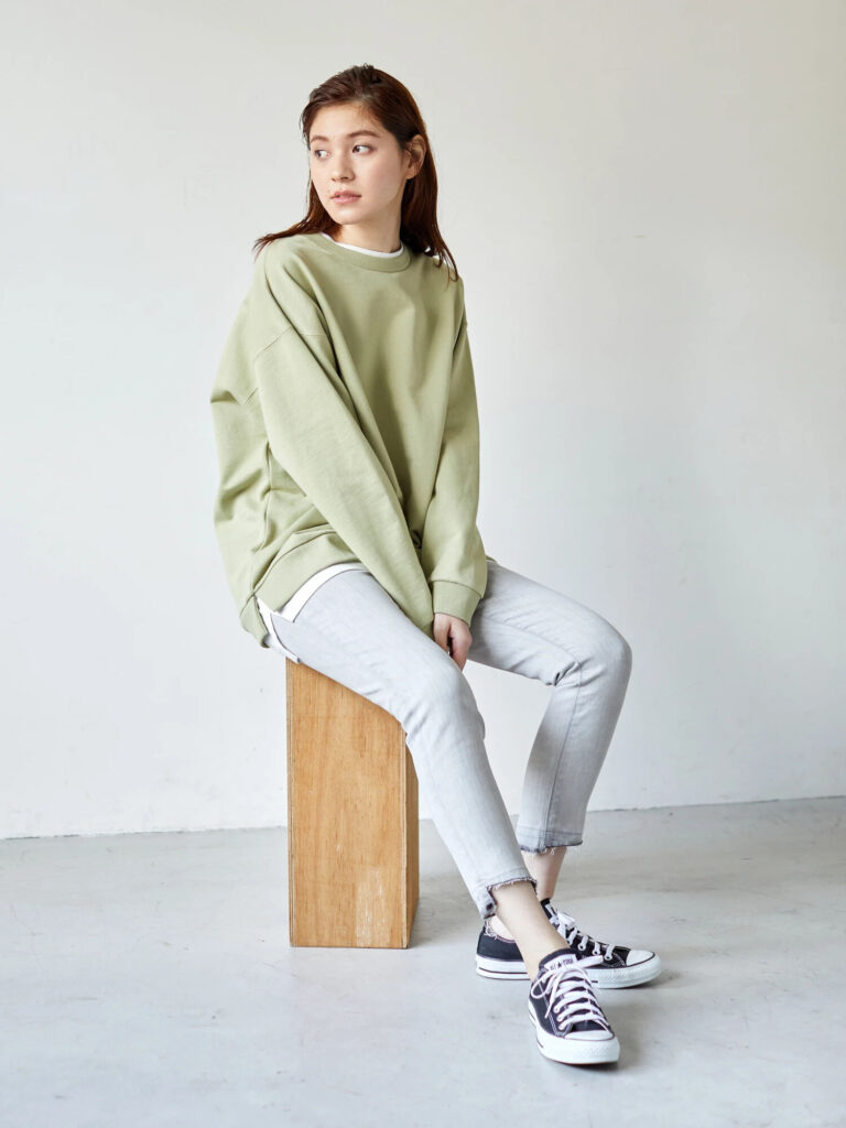緩すぎず、かといってピタッとしすぎず、自然なカジュアルさを演出できます。