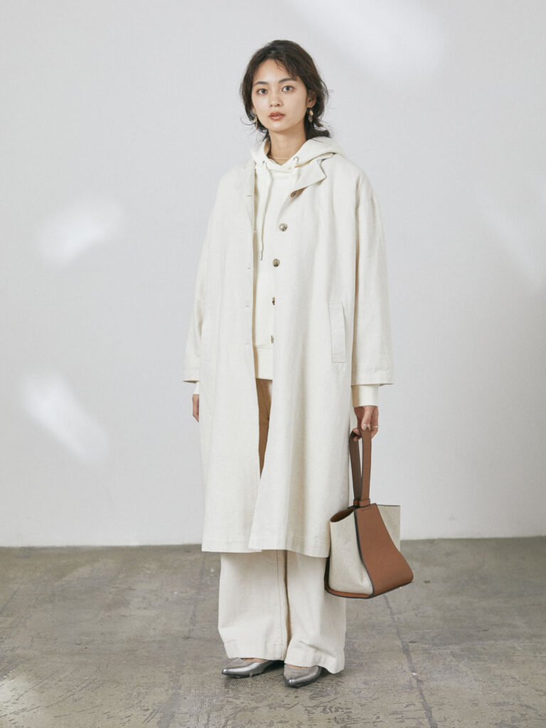 シルエットはビッグサイズでインパクトがある一方、ディティールはシンプル・イズ・ベスト。小気味よい引き算デザインが、甘さをおさえた大人キレイなスタイルを実現してくれます。羽織るだけでこなれ感たっぷりです。