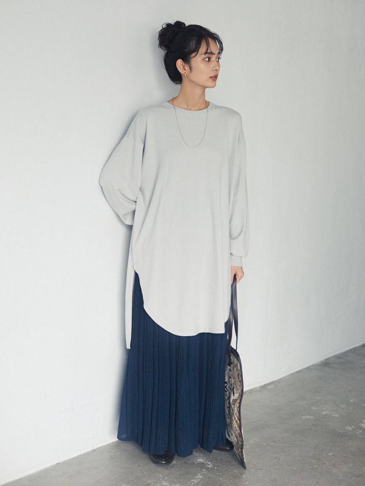 ソフトなニット生地のチュニックは、スウェットのようなカジュアルさを持ちながら、品の良さをもたらしてくれます。