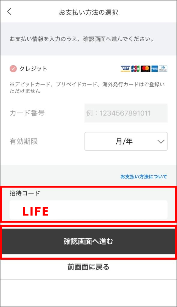 招待コード LIFE