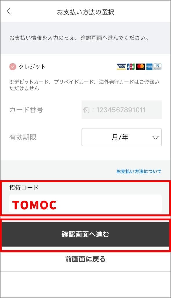 招待コード TOMOC