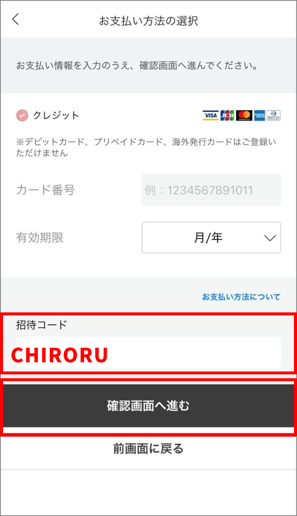 招待コード CHIRORU