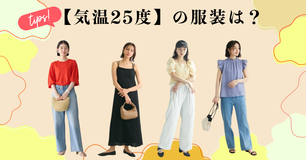 一口に「気温25度」といっても、最高気温が25度なのか、最低気温が25度なのかで選ぶ服装が違ってきます。それぞれの気候に合った服を選んで、体温調整をしっかりしおしゃれを楽しむことが大切です。