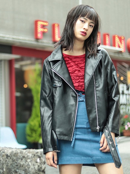 パンツに黒のライダースジャケットといった組み合わせが代表的です。また、エナメルのスカートやブーツを合わせてもクールな印象につながります。
