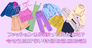 ファッションの系統とは、コーデ全体がまとう雰囲気や取り入れる服の素材ごとに、ファッションをジャンル分けしたものです。