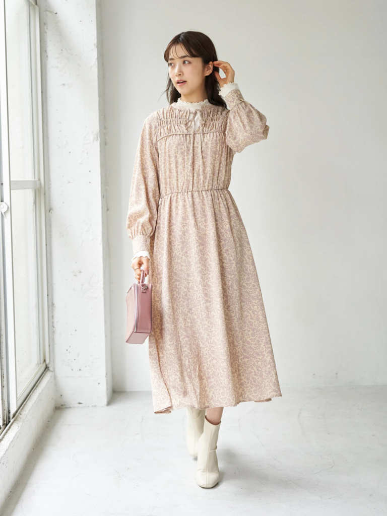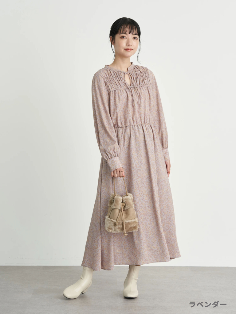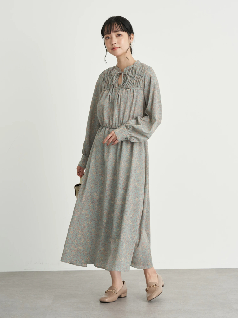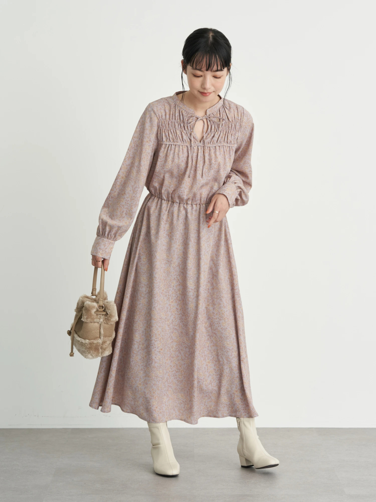 【シャーリングフラワーワンピース】