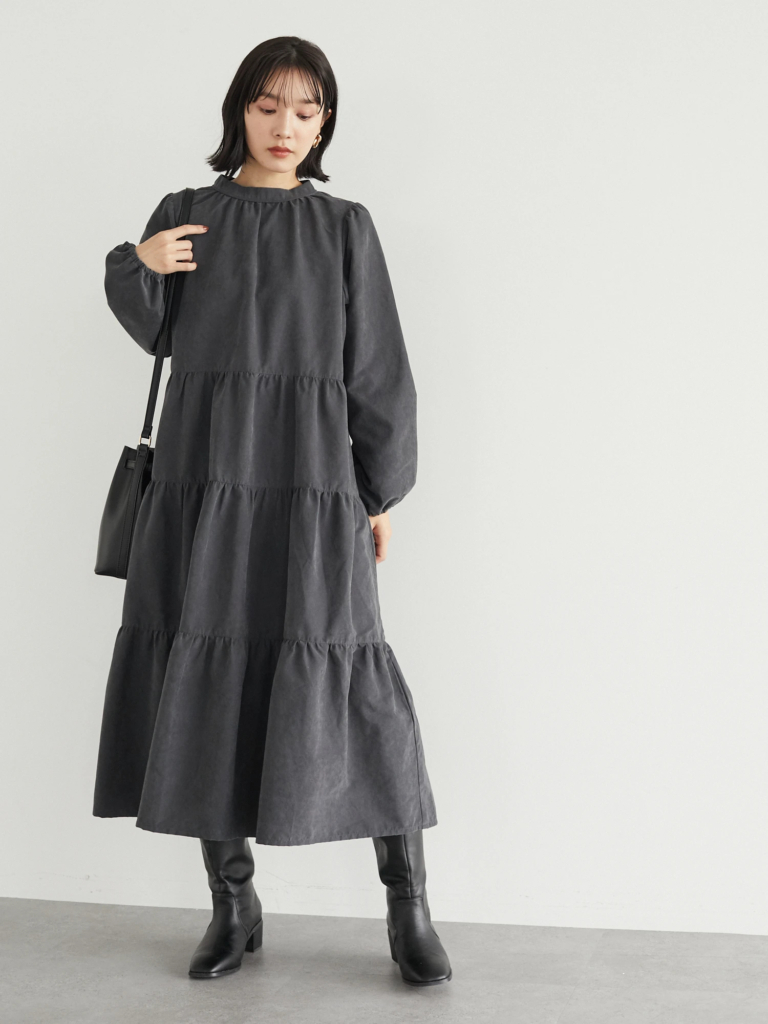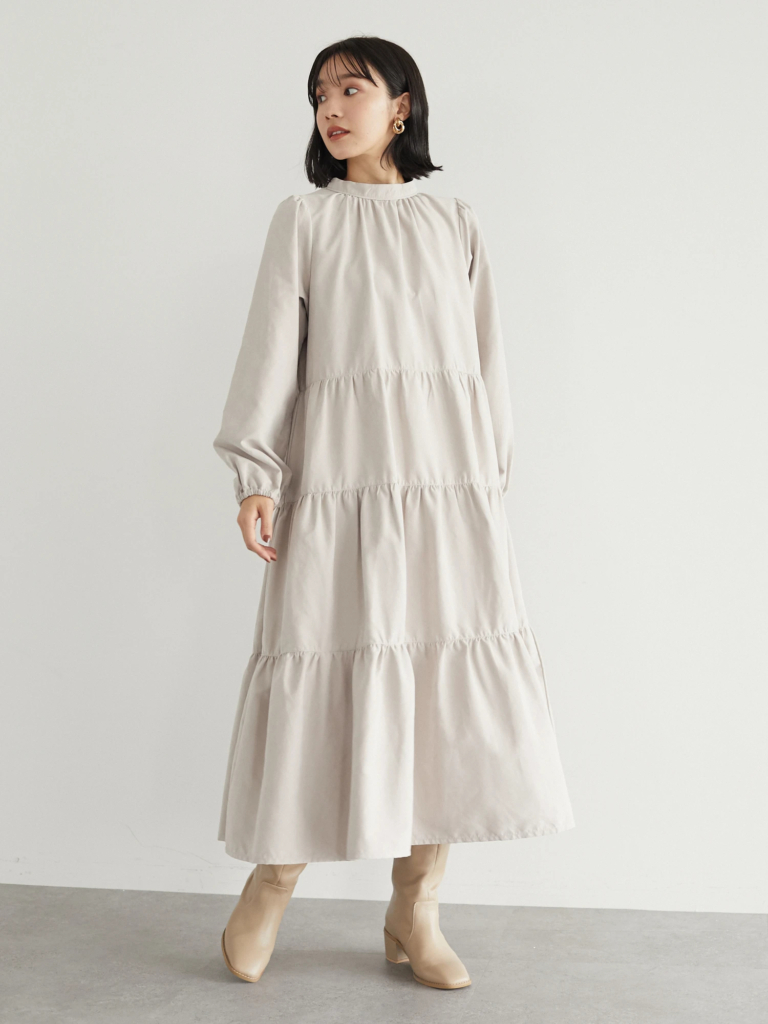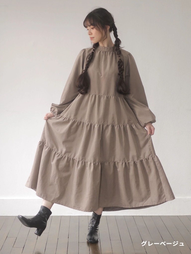 【ハイネックティアードワンピ】