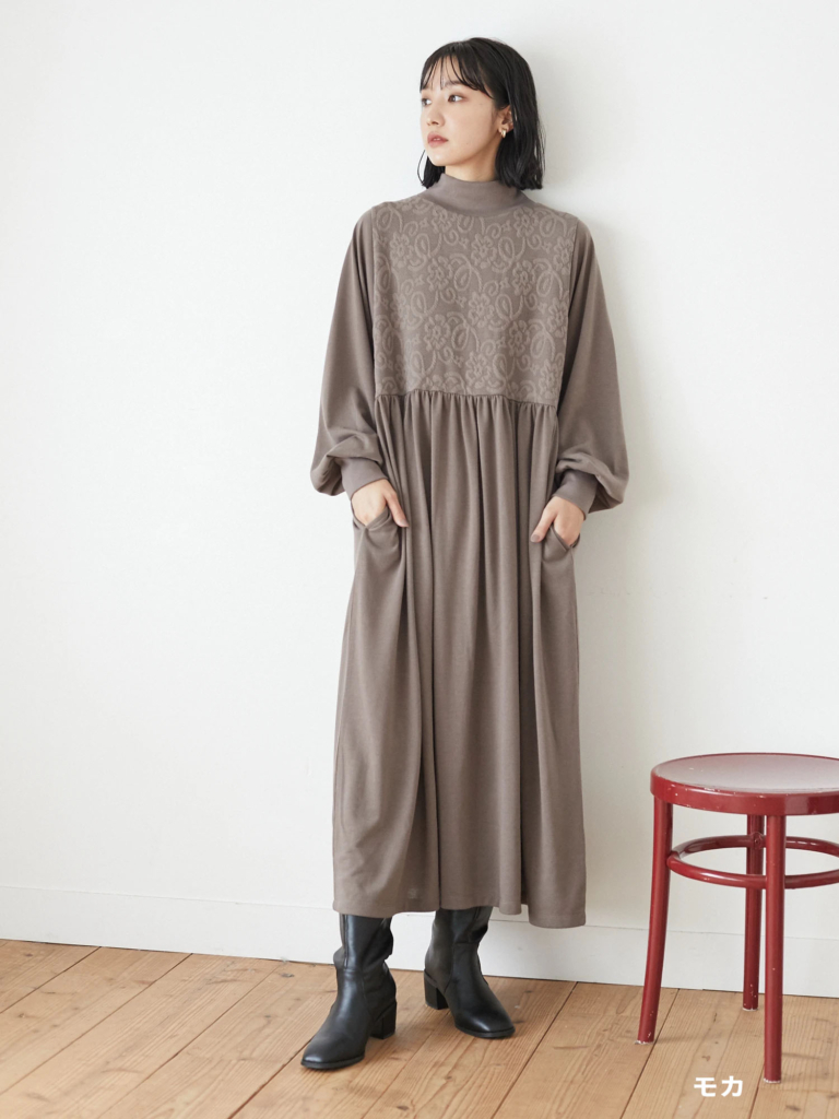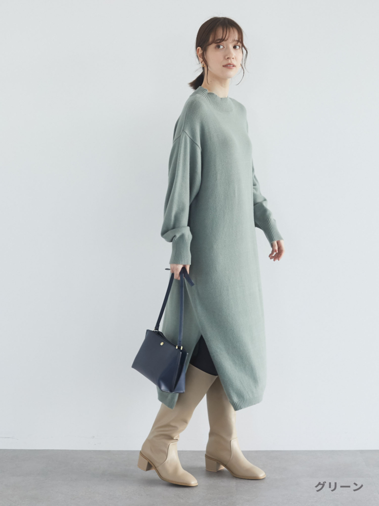 【モックネックニットワンピース】