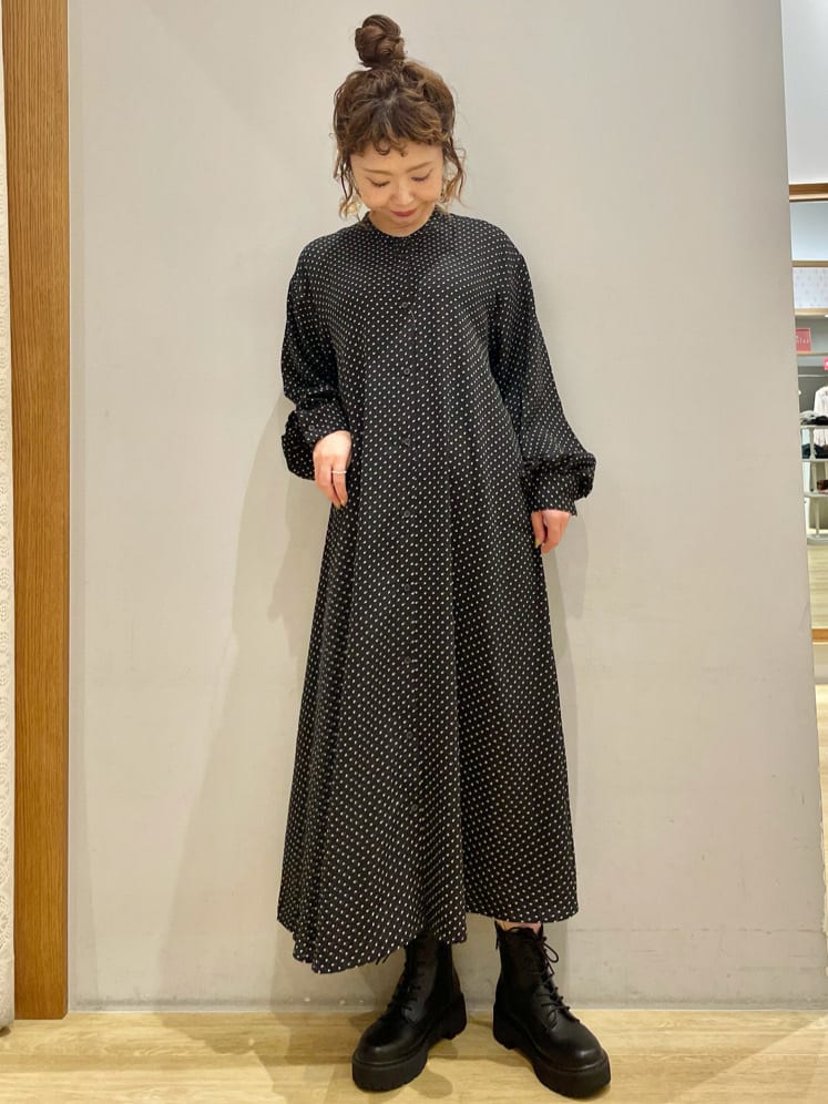 【フラワードットシャツワンピース】