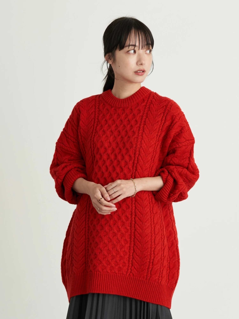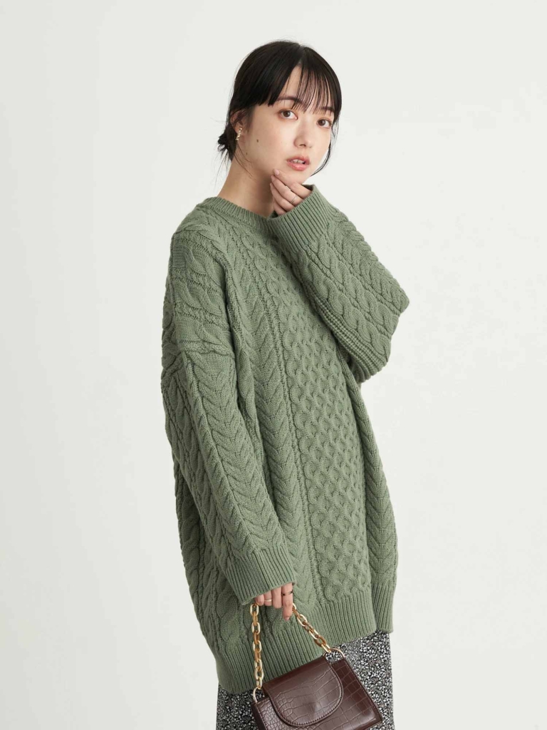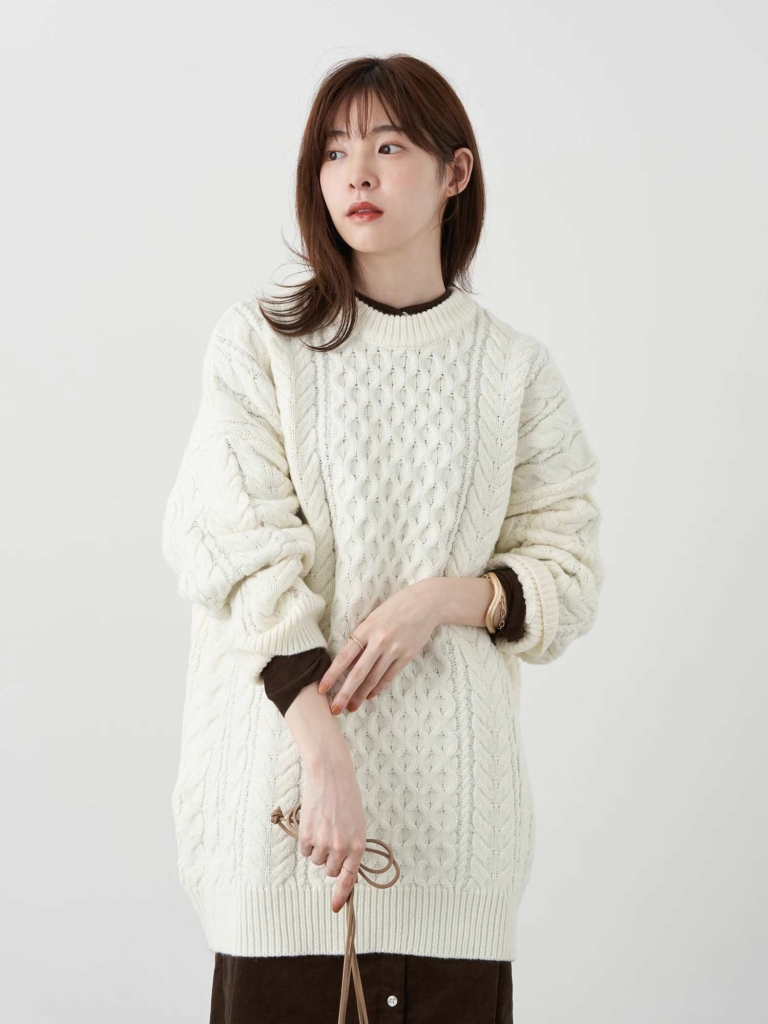【ケーブルビッグニットプルオーバー】
