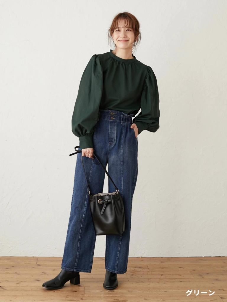 厚手のアイテムを着てもかさばらない、ふんわりなシルエットもポイント◎