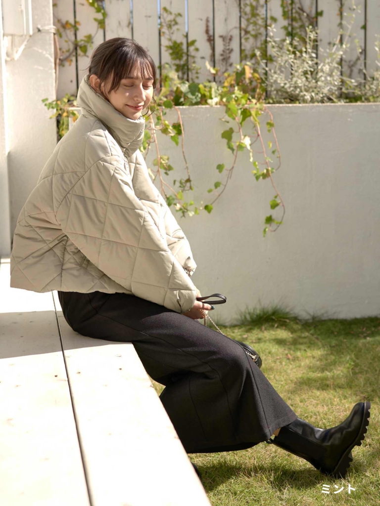 【ショート丈中綿キルトブルゾン】