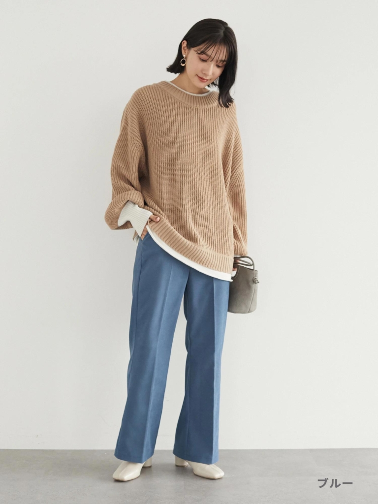 厚手のニットと合わせても、すっきりとした印象に。